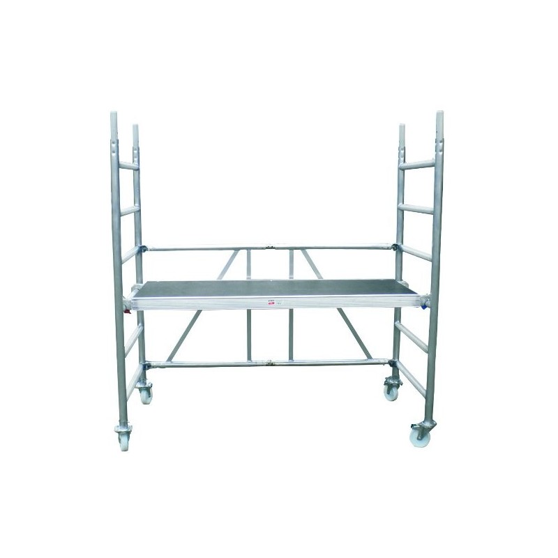 - Pomosty wykonane są z aluminiowej ramy + sklejki wodoodpornej z powierzchnią antypoślizgową — zwiększa to bezpieczeństwo, również przy pracy w mokrych warunkach.