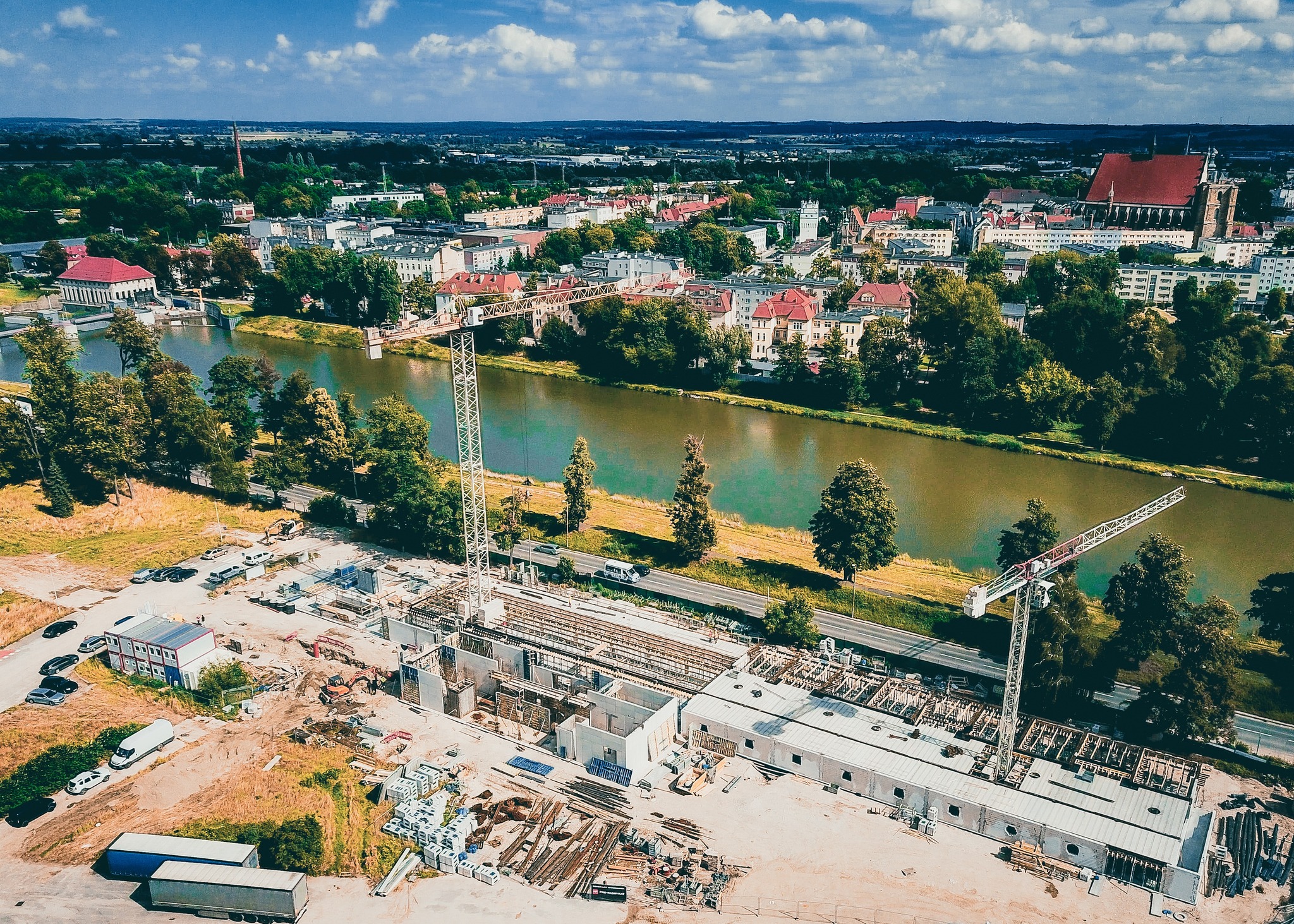 Przy ul. Szlak Chrobrego w Nysie realizowana jest nowoczesna inwestycja mieszkaniowa obejmująca trzy budynki wielorodzinne. W ramach projektu powstaje łącznie 76 mieszkań, których atutem jest atrakcyjne położenie – z widokiem na rzekę oraz panoramę zabytkowego centrum miasta.